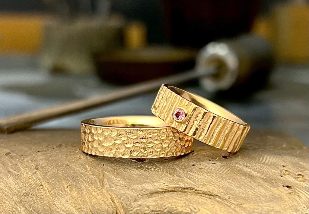 Tomin Isoäiti sai aikanaan Helsingin kaupungilta kolmekymmentä grammaa painavan kultaisen mitalin yhtä monen vuoden palveluksistaan. Mitali siirtyi myöhemmin perintönä Tomille ja kun nyt tuli aika vihkisormusten hankkimiselle, oli oikea hetki hyödyntää sitä sekä hänen oman, että puoliso Monnan sormuksiin. Kumpikaan ei halunnut sormuksiensa olevan perinteisesti sileitä ja kiiltäviä, vaan päin vastoin molempia miellytti ”raffit”, mutta toisistaan poikkeavat pinnat. Sormusten Herran verstaalla valmistui samalla siis paitsi vihkisormukset, myös muistosormukset ja Monnan sormusta koristaa lisäksi pinkki safiiri. Kaikki kolmekymmentä grammaa Isoäidin mitalista ei kuitenkaan kulunut vihkisormuksiin, joten Tomi maksoi yli jääneellä kullalla osan työn hinnasta.