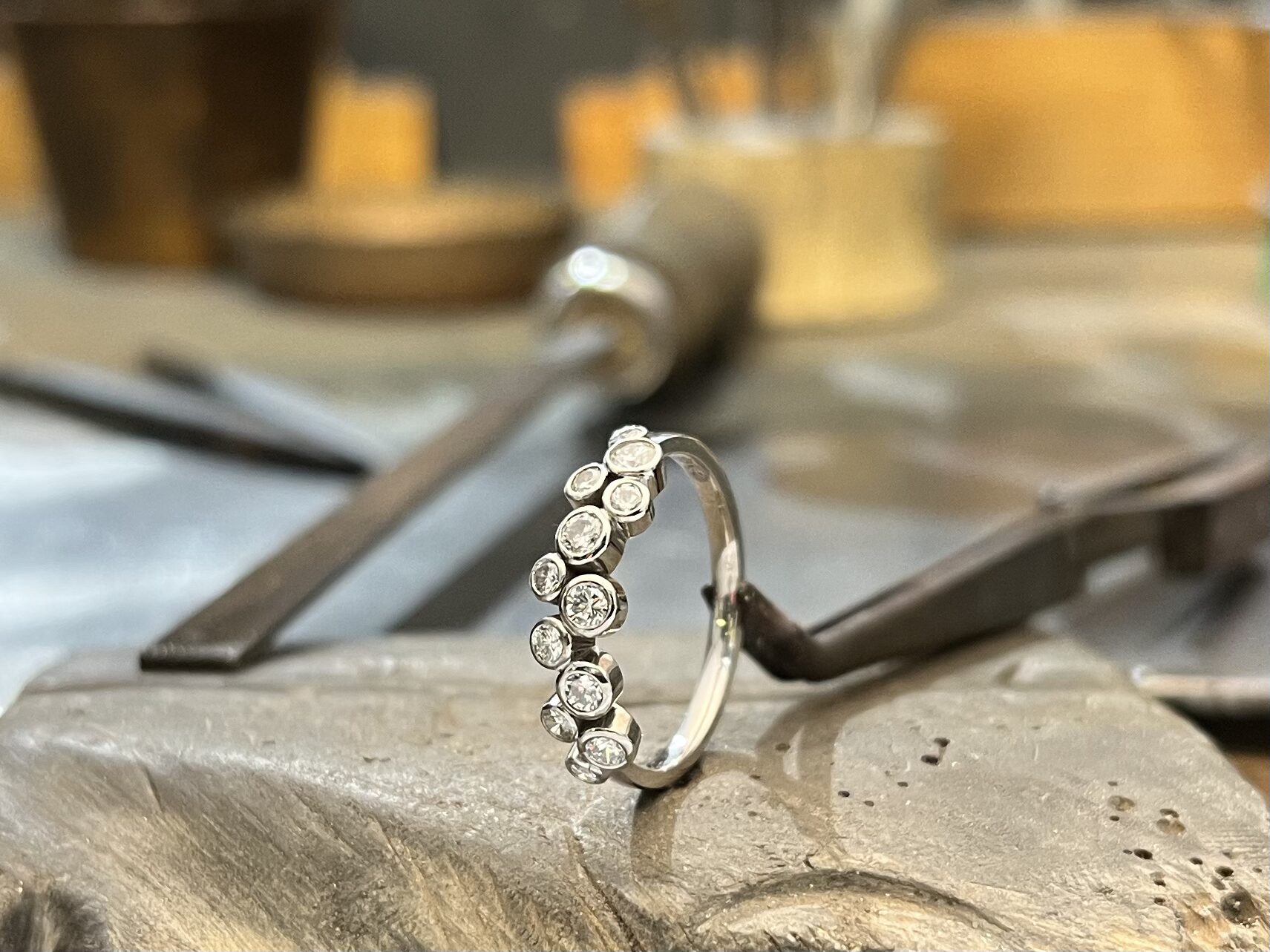 Muistosormuksen timantit siistissä epäjärjestyksessä
